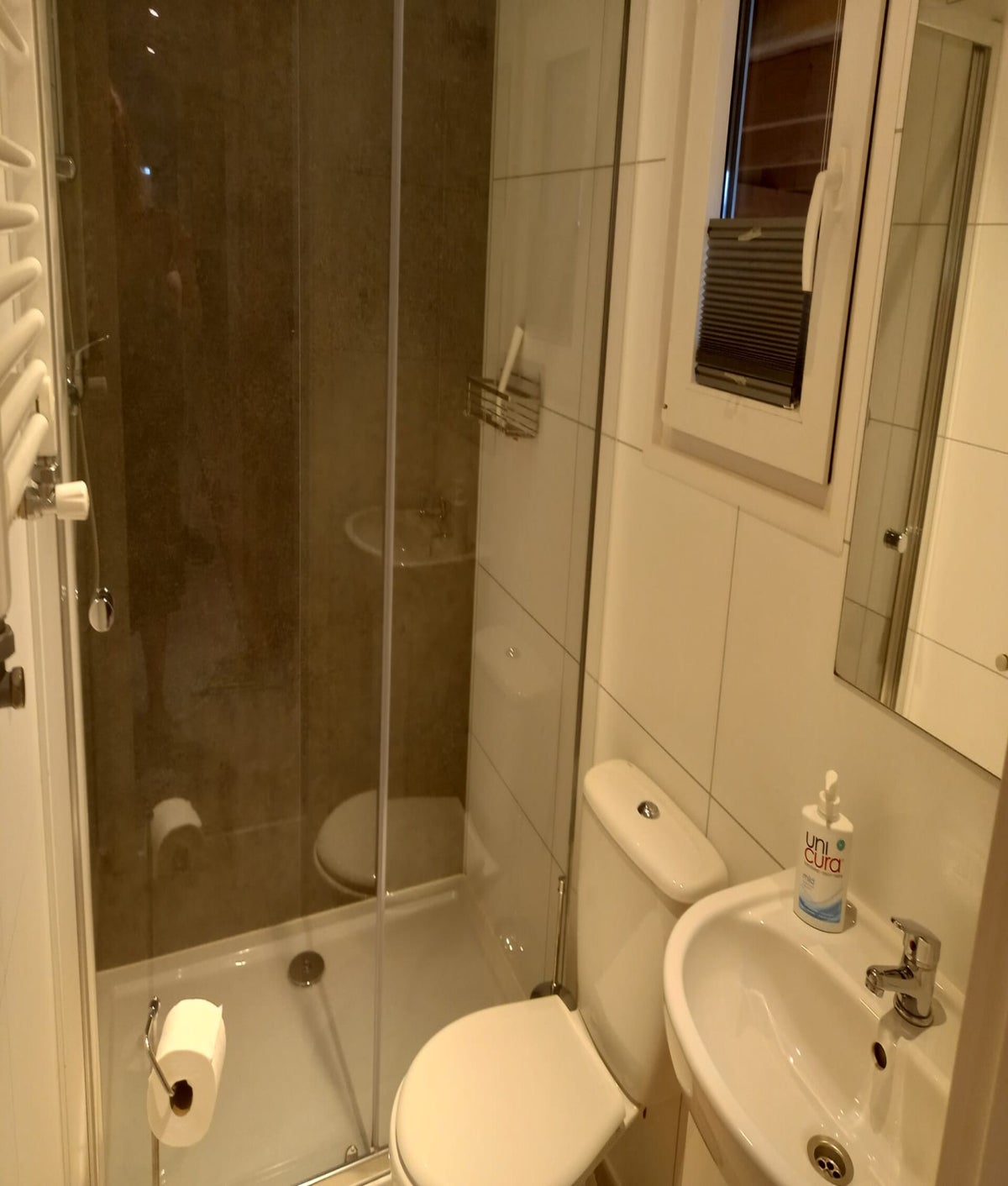 - De badkamer bestaat uit een wastafel, douche en toilet.