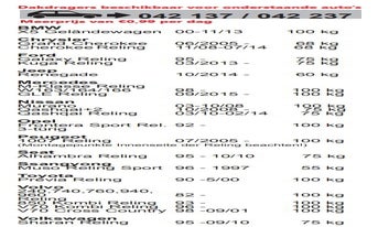 Dakdragers eventueel te huur voor €1,- per dag extra. Zie de foto's voor welke auto's deze geschikt zijn.